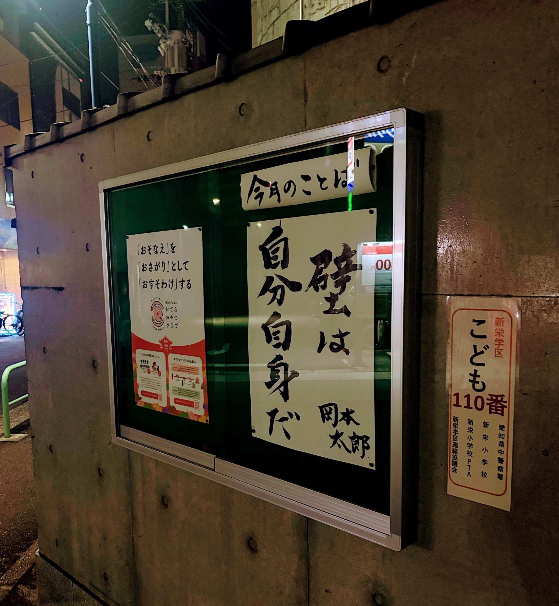 今月の掲示板のことばは岡本太郎の「壁は自分自身だ」という、強く潔いおことばをいただきました。